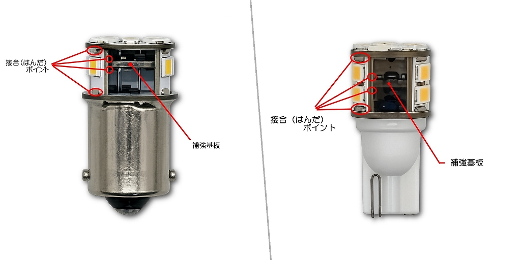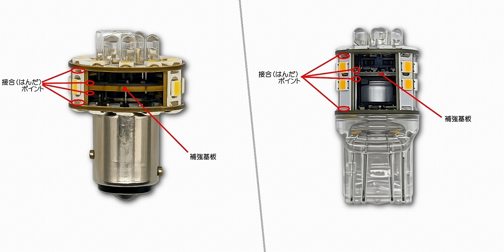 ウインカーと同様、テール/ストップ球内部にも基板を組み込み強度アップを図っています。